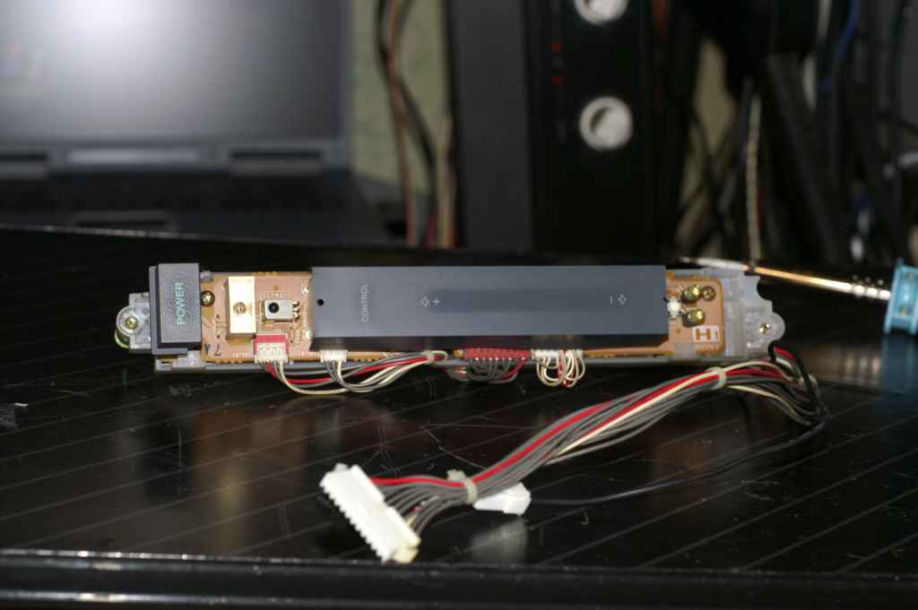 1枚目の写真は、電源スイッチや操作パネルが一纏めになった基板を取り出したもので、現物はこんな感じで収まっています。 |