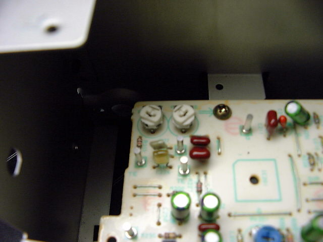 最終手段として、半固定抵抗をいぢることに。上の写真の左側のVRをいぢりました。