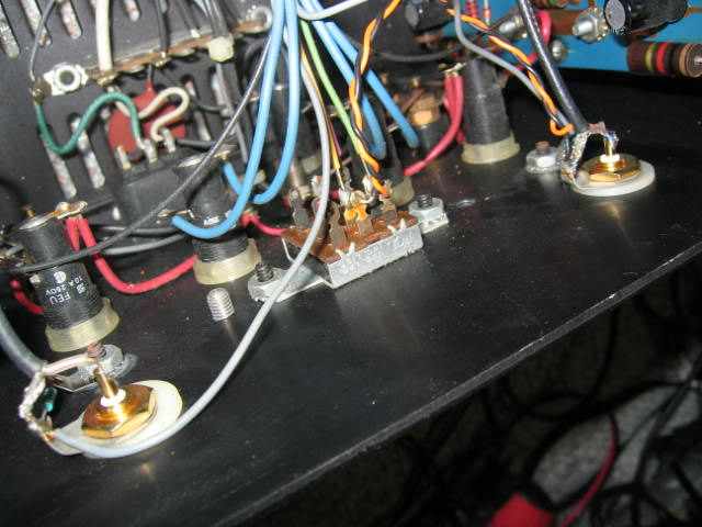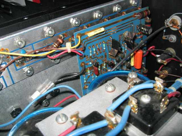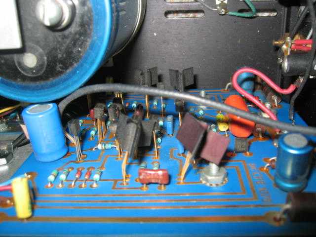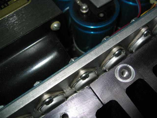 | 終段Tr。逝ったらもう手には入らないでしょうね。 ちらっと見えている電源トランスがこれまた重たい。 |