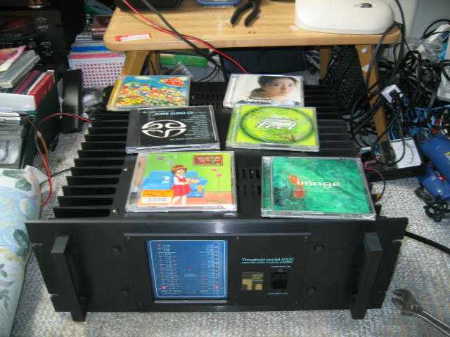 | 試聴中の様子。 ウチの最終兵器になるB-2301もなかなかやるアンプなのですが、コヤツはその上に音切れが良くてさらに駆動力があります。 聴いていて気持ちがよいです。考え方が国産と違うんでしょうね。 妙なCDが2枚ほどありますがスルーしてくださいorz |