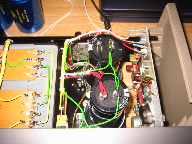 | コンデンサの交換を終えたところ。 音を出してみますが、問題無さそうです。 |