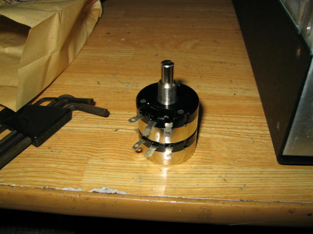 | で、動作確認しましたが改善していませんでした。(泣) どうやら抵抗体が削れてしまっているようです。 やむを得ず日本橋で買ってきたオーディオ用バリオーム。 2500円もします。 |