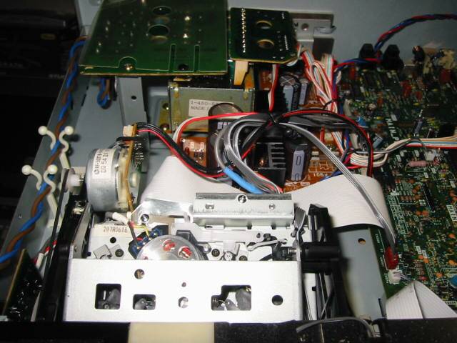 デッキにメカを組んだところ。 電源もそこそこですが、メカは残念なつくりです。 |