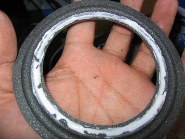 | ここまでの行程、およそ2分。口径が小さいので早いですね。 コーン側のエッジも出来るだけ剥がしておきます。完全には剥がれないようですが・・・。 |