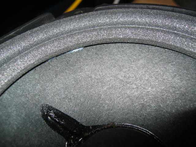 | BOSEご自慢の11.5cmユニット。 結局14本貼り替え。ちなみに2本はもとよりユニットが外されて居たため、新品をやむを得ず入れることに。 |