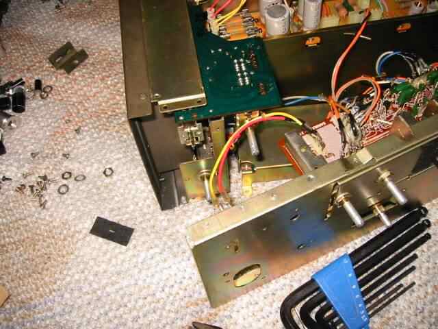 | 次はテープモニタースイッチに掛かります。 物理的にパネルが当たってしまうので、パネルを取り外してしまいます。 |