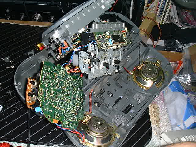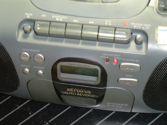 | 元通り組立てて試運転中。密かにオートリバースです。今の時代、安物CDラジカセにはオートリバースが付いたモノは少なくなっています。 | |