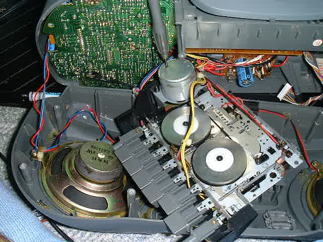 | 基板をどかし、CDメカユニットを取り出してみます。 | |