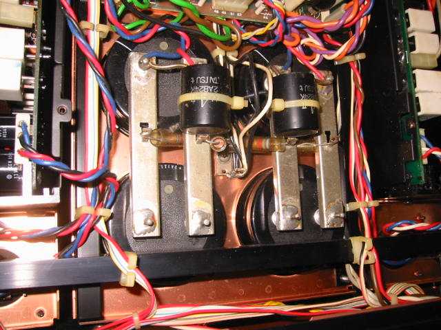 底を開けて見ると、まずは左右の電源の完全な作り分けが圧巻です。 Λコンデンサというのでしょうか、これは初めて見ました。 |