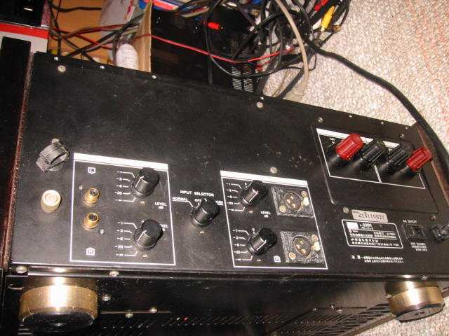 入力レベルはアンプ側でも調整できるようになっています。 うちでは−20にセットしてあります。 |