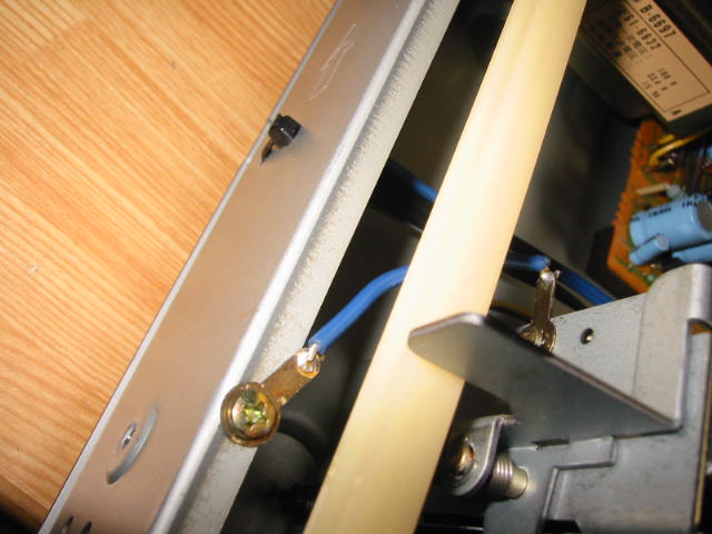 | これがアース線。アースしないと再生音にノイズが乗りますから良く分かります。 | |