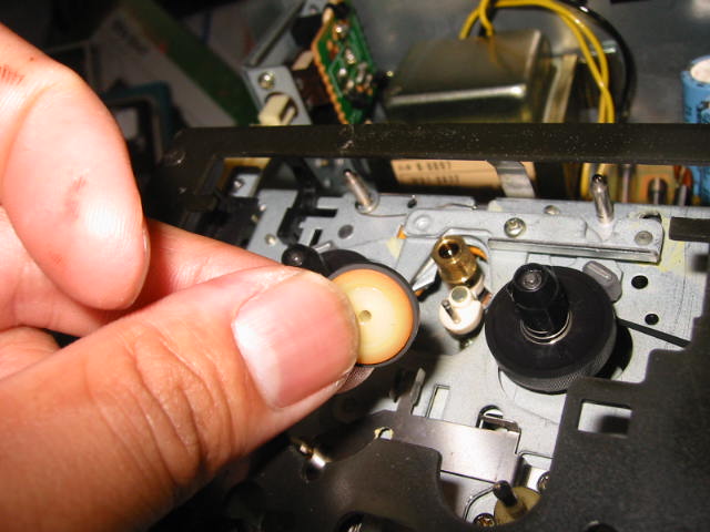 | アイドラのゴム劣化ですので、アイドラを取り外します・・・。 | |