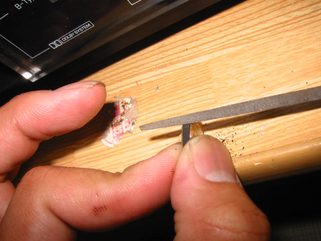 | このように表面を削り落とします。 色が変わったらOKです。 |