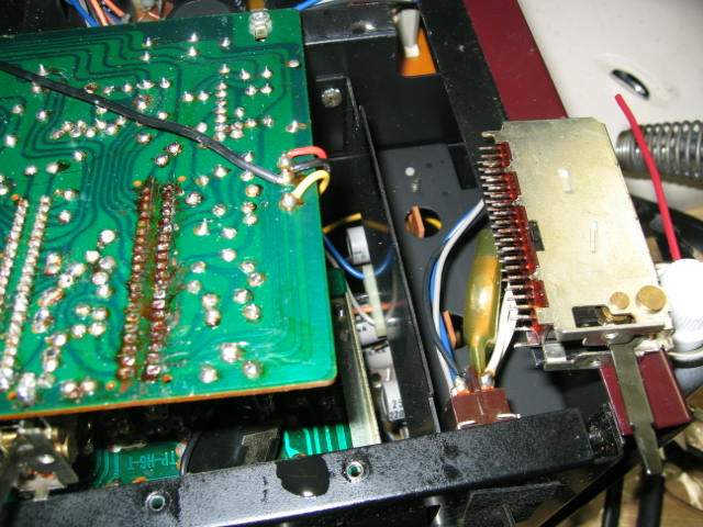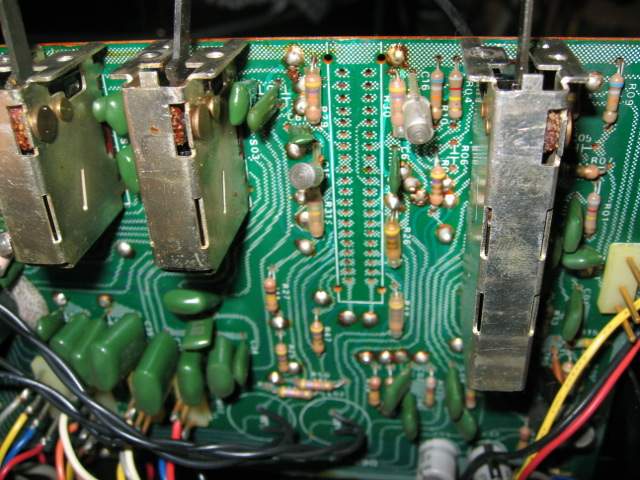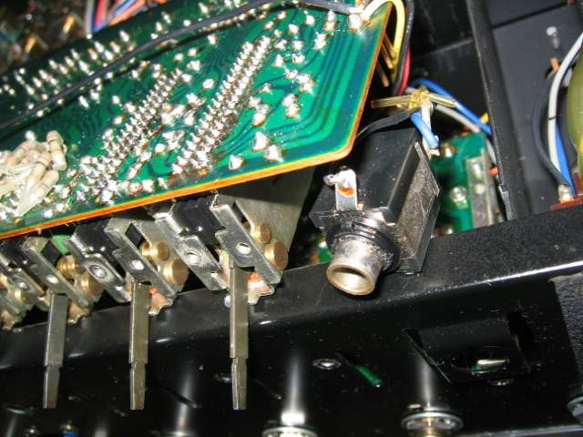 | とりあえず音は出るのですが、片ch接触不良です。 いろいろと調べると、FILTERつまみ周辺が怪しいようです。 バランスつまみもガリガリですが、重傷でもないですので軽く接点復活材を吹き付けるだけにします。 |
