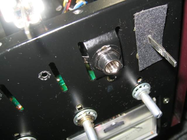 | 高さやジャック外径などが合わないと取り付けできないので、市販品がこの手のアンプに取り付けられるのは比較的珍しいです。 | |