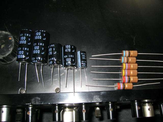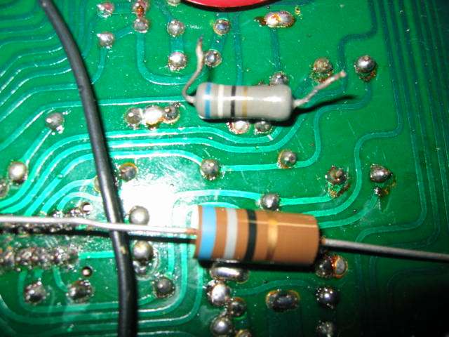 | 抵抗もヒートしている様子でしたので置き換える予定だったのですが、足の太さが合わず今回は1本だけにしました。失敗。 | |
