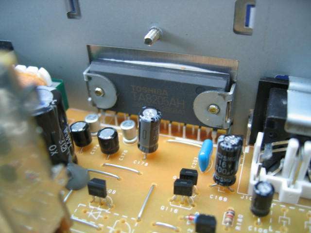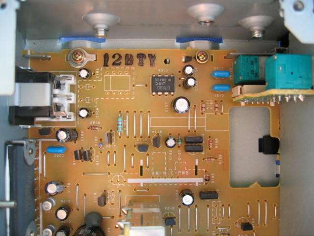 | 半固定抵抗が思いの外多いです。左の半固定抵抗は多分FMステレオ時のミュートレベル設定。 | |