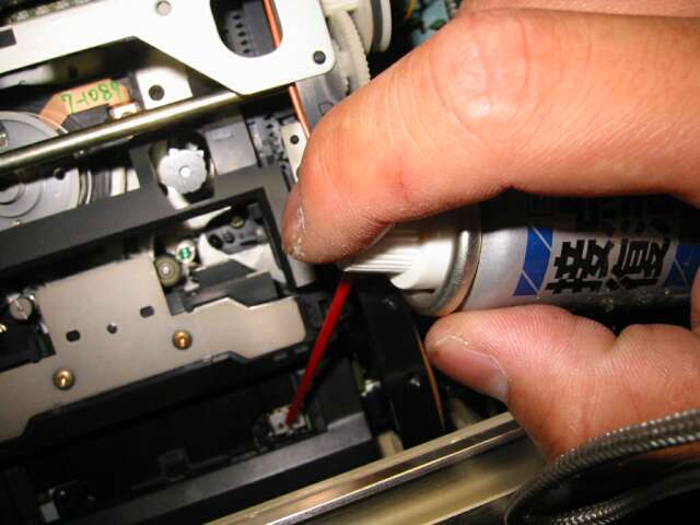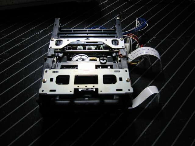 | 早速メカを摘出します。基板との信号コネクタ類をすべて取り外し、メカ固定の4本のビスを取り外せば、メカはあっさりとはずれます。メンテナンス性は非常に良いと言えます。 | |