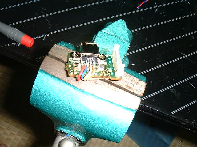 これだけ小さいと半田付けも容易ではなく、ミニ万力でコネクタを軽く挟む。