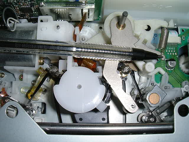 メカの大きさの比較のため、参考用にボールペンを置いてみました。