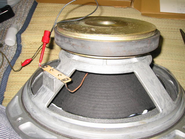 | コーンにエッジを接着し終わったら、音を出してみてユニットのセンター出しをします。 | |