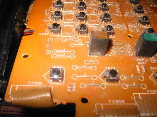 交換したスイッチの動作確認のためチェック中。ふた閉の検出は左下にあるスイッチですので注意。何個か取り替えてバラックテストを行って問題がない事を確認したので、全数を交換します。全部で28個なり。スイッチ1個が35円でした。 |
