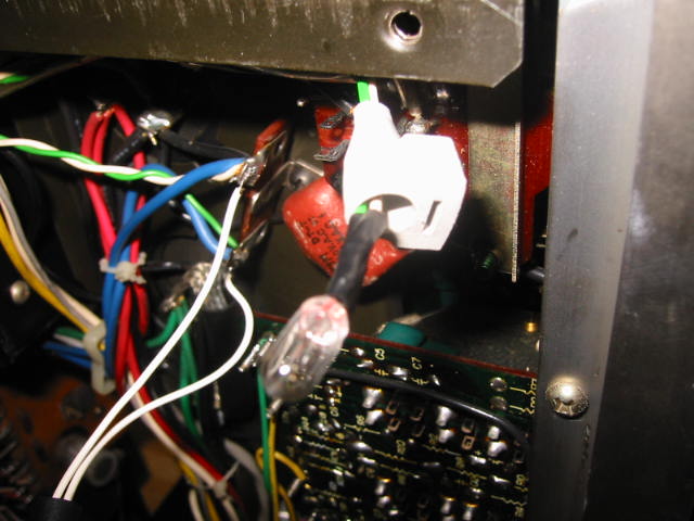 | スピーカー切り替えスイッチのつまみがぐらぐらでしたので、調べるとつまみの裏にビスがありました。これを増締めするとOKとなりましたが、凝ってますねェ・・・。 かくして、本アンプは無事に納品されました(笑)。 |