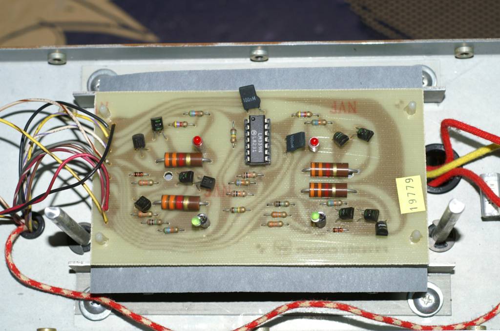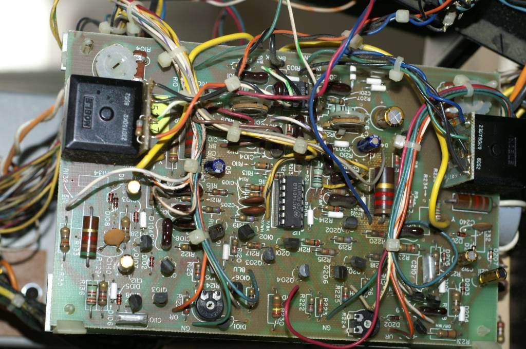 | ICは抜いてありますが、これは調査中の為です。 電解コンデンサ交換後の基板の様子です。 依頼者より、2台目の動作品PS-200を修理調査用に貸して頂いたので、それからリレーを拝借して動作チェックしてみます。 が、動作しませんでした。(汗) 動作品からICも入れ換えたりして、結局写真では抜かれている4073B(U5)が不良でした。 |
