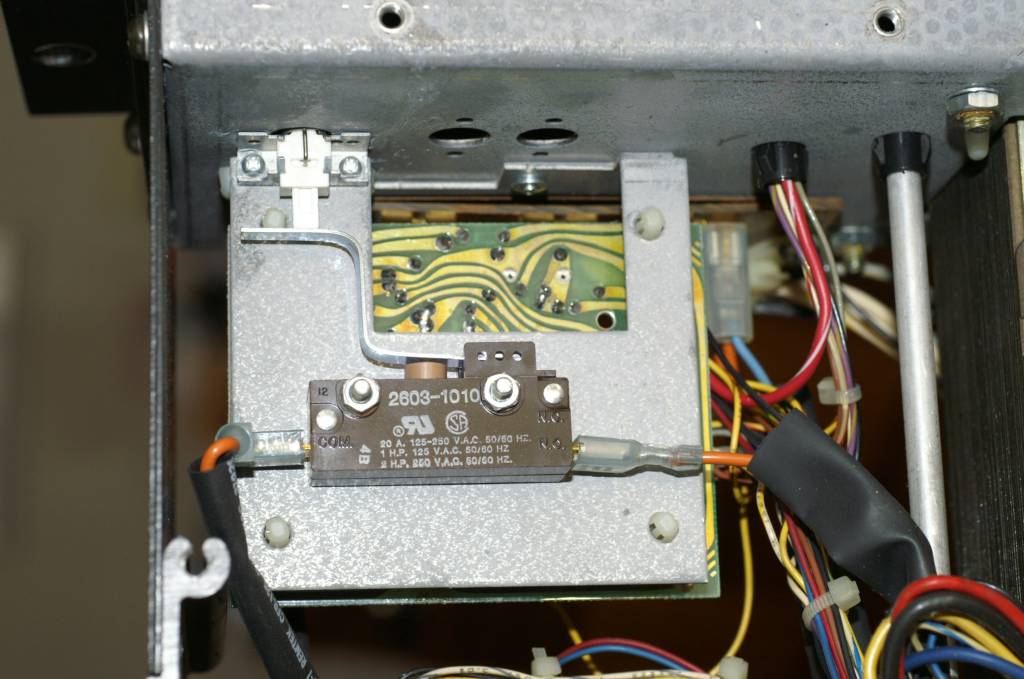 | このアンプの電源スイッチ。なんか凄い事になっていますな。 | |