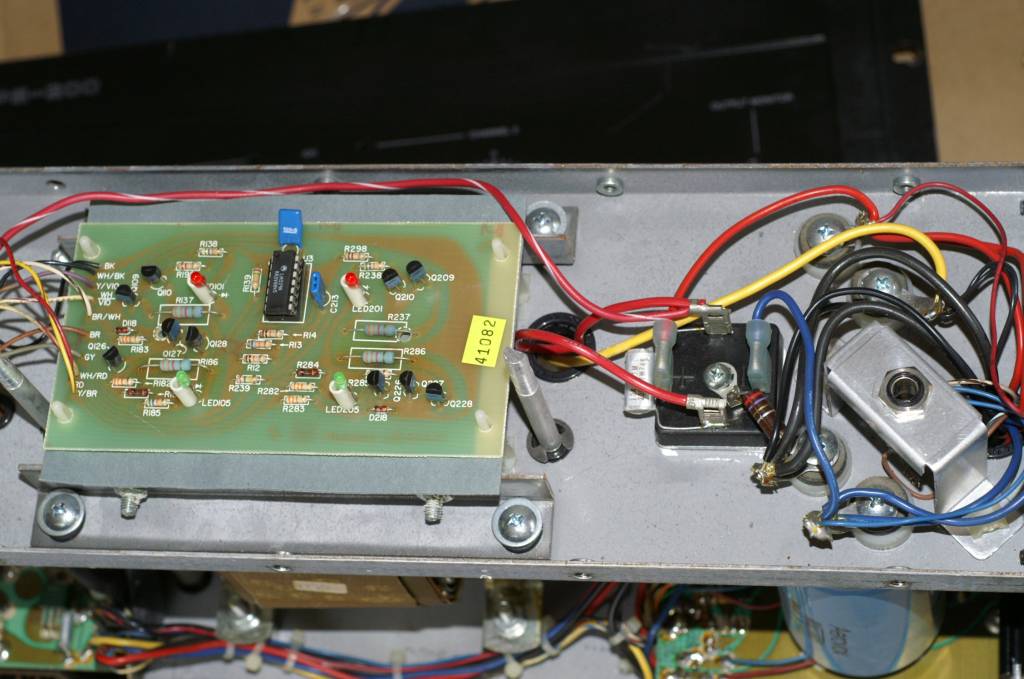 | 修理依頼品として、CrownのPS-200がやってきました。 海外から個人輸入したそうですが、到着時から故障品とのこと。 状況は、電源を入れてもIOCランプが点灯したまま消えないというもの。 3月末に預かったものです。修理は5月初旬まで掛かりました・・・。 後ろに見えるのもPS-200で、これも同一オーナーによる修理依頼品です。 そして私も何故か入手することになり、合計3台をメンテしました。 |