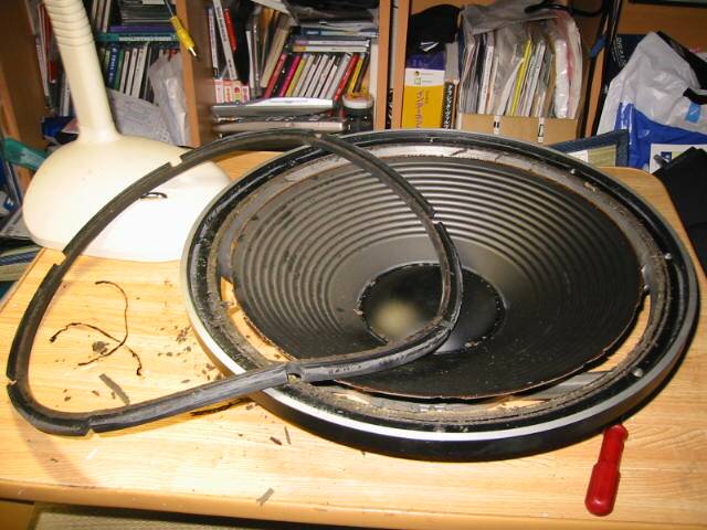 途中の写真は撮っていませんでした。 これが実物のスピーカーの状態です。 微妙に変わっているのは、スコーカーが微妙にサイズが大きいことでしょう。 一番下が今回修理したドロンコーンになります。 音質はおもしろいもので、ドロンコーン特有のものでした。 でもしっかり低域も伸びていましたし、これはこれで(・∀・)イイ!!ものです。 |