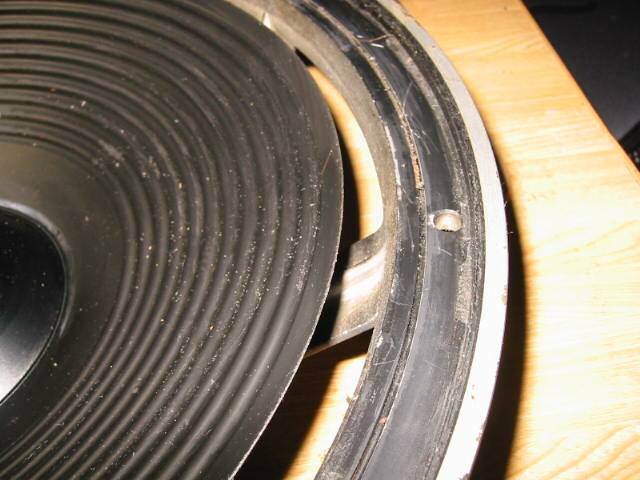320mmもあるユニットです。 修理を依頼されてしまいました。 ドロンコーン故、磁気回路はついていません。 本当は箱毎お持ち帰りしたかったのですが。 重量35kgということと、どでかいフロア置きだったので泣く泣く止めまして、ユニットだけ引き取ってきました。(・∀・)イイ!! |