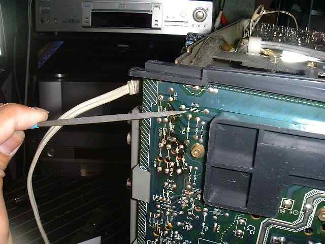 下の黒いプラスチックは、あの「フライバックトランス」の足のカバーです。いかに危険な個所かが判りますな。