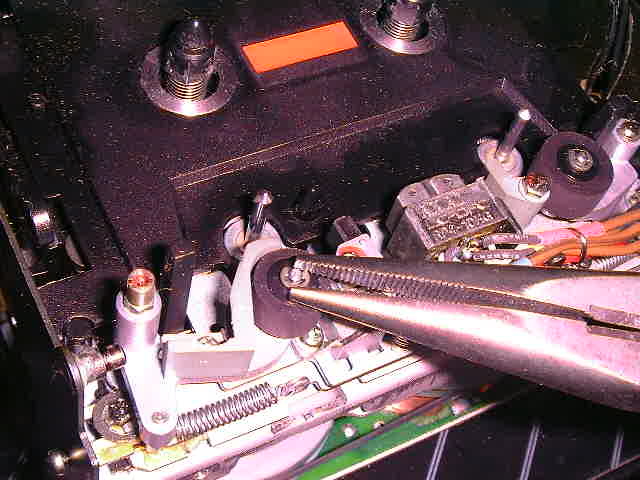 さて、新品のピンチローラーを取り付けた後はEリングを取り付けますが、軸とリングをラジオペンチで挟むのが良いようです。