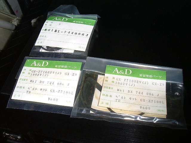 メーカーで買った部品の、ベルトキット。今後GX−Z系を入手したときの為に予備を2本購入。