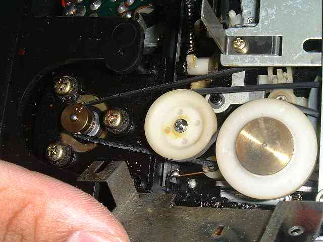 オートシャットオフが動かなかったので、何故かなと調べてみたところ、原因はベルトの伸びでオートシャットオフ機能がはたらく為に少し力が掛かると、ベルトがスリップしていました。指で補助しながら動かしてみると、オートシャットオフは問題なく動きました。オイオイ、凄いぜソニー!